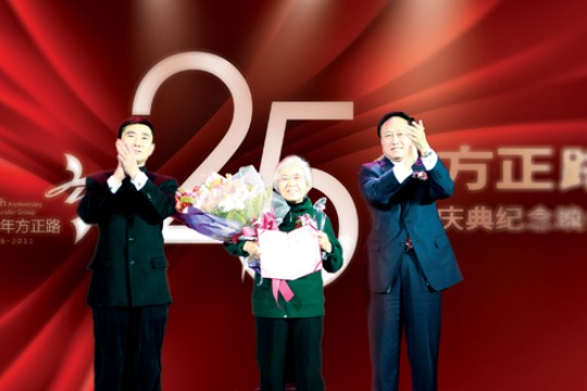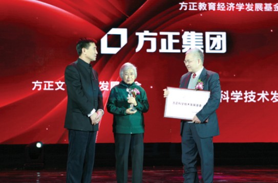 在方正集團25周年慶典上,王選院士被授予“方正終身成就獎”,方正集團精心制作出版的《王選院士畫傳》同時被贈予王選院士夫人陳堃銶教授。