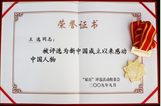 2009年9月10日,王選院士當選“100位新中國成立以來感動中國人物”。